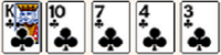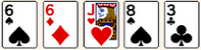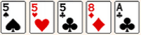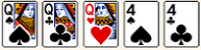Exempel: fyrtal i siffran nio slår fyrtal med siffran fem. I fall två spelare har samma siffra i fyrtal så avgörs vinnaren med ett femte kort, självklart den med högsta kortet vinner. Sidokort eller kicker är det man kallar det femte kortet. Skulle båda spelare få samma siffra på sidokortet så är båda spelarna vinnare och splittar potten jämt.